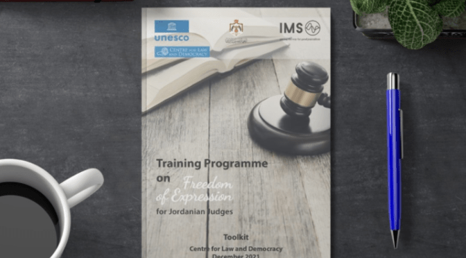 On February 7, 2022, UNESCO (United Nations Educational, Scientific and Cultural Organization) launched the Training Manual for Judges on International Standards on Freedom of Opinion and Expression, a comprehensive toolkit for supporting judges to take into account international human rights standards on freedom of expression in their decisions, has been launched. The toolkit was prepared by the Centre for Law and Democracy (CLD) in collaboration with International Media Support (IMS), UNESCO and the Judicial Institute of Jordan, and piloted at a training of judges in Amman, Jordan in September/October 2021.The toolkit is divided into six main modules, namely: International and National Guarantees of Freedom of Expression, The Legitimate Scope of Criminal and Civil Law Restrictions on the Right to Freedom of Expression, Legal Resolution of Attacks on Freedom of Expression, The Right to Access Public Information, Media Regulation to Promote Free, Independent and Diverse Media, and Regulating Freedom of Expression in the Digital Era. It also has a number of annexes addressing common questions and answers, and containing exercises to support the training and additional resources.